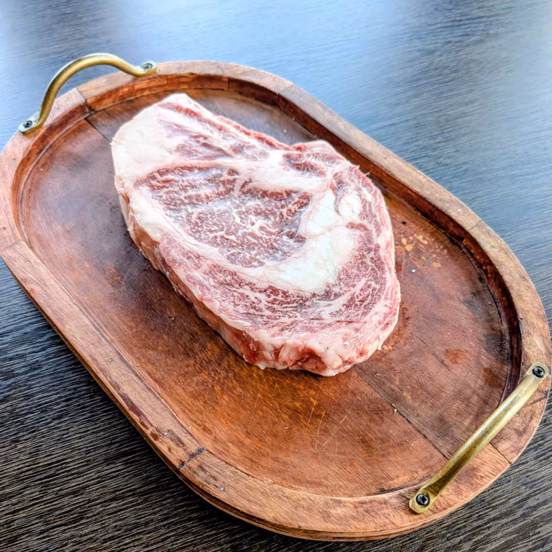 Detaljen kommer från King River Wagyu och har en marmorering på BMS 6–7, vilket ger köttet en perfekt balans mellan saftighet och smakdjup. Benet – kortare än på en tomahawk – hjälper till att bevara saftigheten vid tillagning och ger extra smak under grillning eller ugnsstekning.